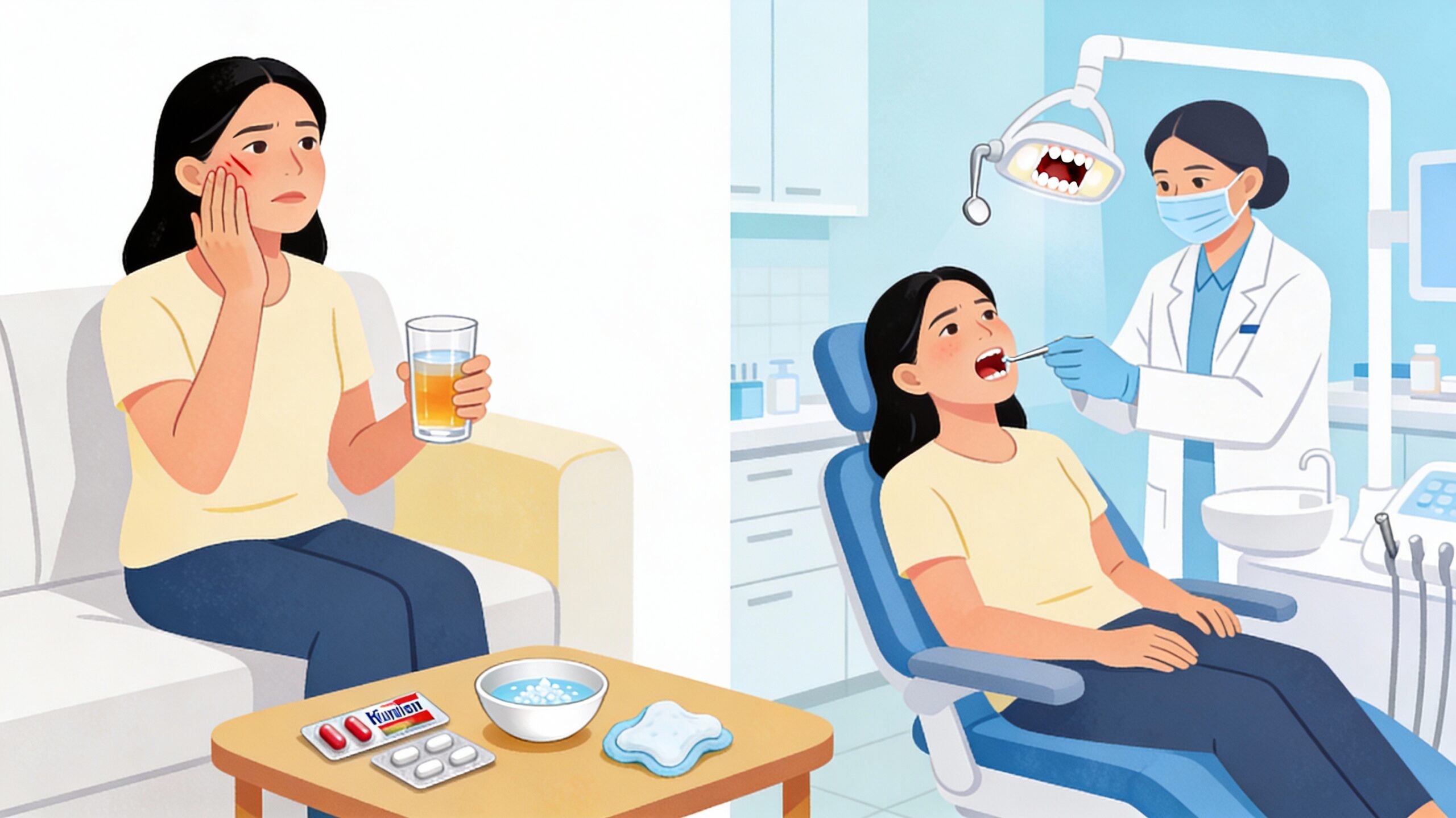 Pertolongan pertama di rumah hanya bertujuan menenangkan nyeri sementara. Begitu efeknya mereda dan nyeri muncul lagi, artinya saatnya mulai memikirkan perawatan gigi yang sesungguhnya, bukan hanya meredakan rasa sakit. Secara praktis, beberapa kondisi berikut sebaiknya menjadi batas jelas untuk segera ke dokter gigi: