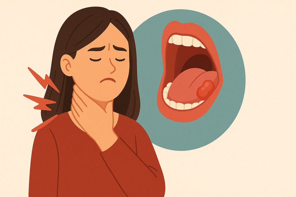 Gejalanya: bengkak, luka, demam, dan nyeri hebat yang menjalar ke tenggorokan saat menelan.