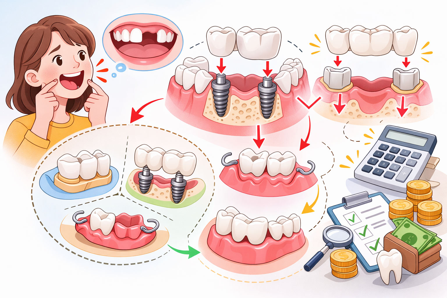 Saat kamu kehilangan dua gigi, dokter memiliki beberapa solusi yang bisa disesuaikan dengan kondisi mulut dan kebutuhanmu. Tiap jenis memiliki karakteristik, durabilitas, dan kisaran harga berbeda. Berikut penjelasannya: