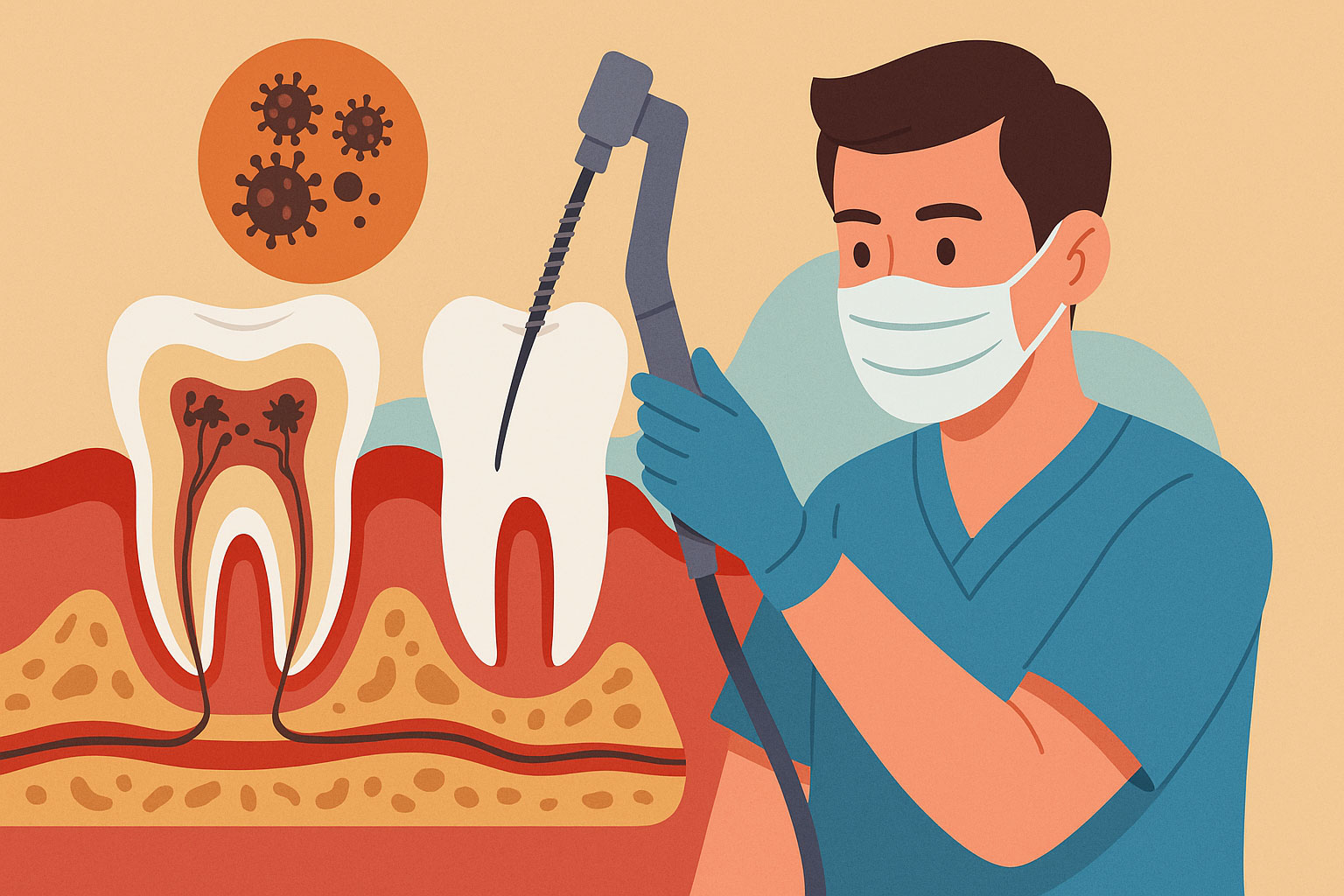 Ketika akar gigi mengalami infeksi, bakteri dapat dengan mudah menyebar ke jaringan di sekitarnya. Jika kondisi ini tidak segera ditangani dengan perawatan akar gigi yang tepat, infeksi dapat berkembang menjadi abses gigi, yaitu kantung nanah yang sangat menyakitkan. Abses ini berpotensi menyebar lebih jauh ke area lain seperti rahang, pipi, atau bahkan organ vital lainnya seperti jantung dan paru-paru melalui aliran darah. Oleh karena itu, tindakan pencegahan dan penanganan dini sangat penting untuk menghindari komplikasi yang lebih serius.