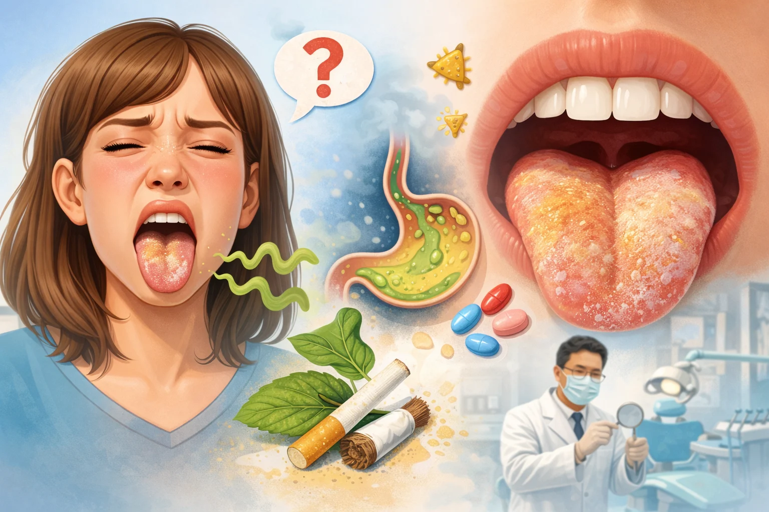 • Lapisan lidah kotor atau berjamur yang dibiarkan menumpuk.